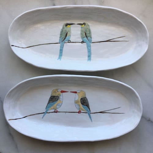 This places sells many house hold decorative items painted ceramics dishes sculptural figures a lot of it is pretty cute and i believe it is all handmade by the owner of this store.